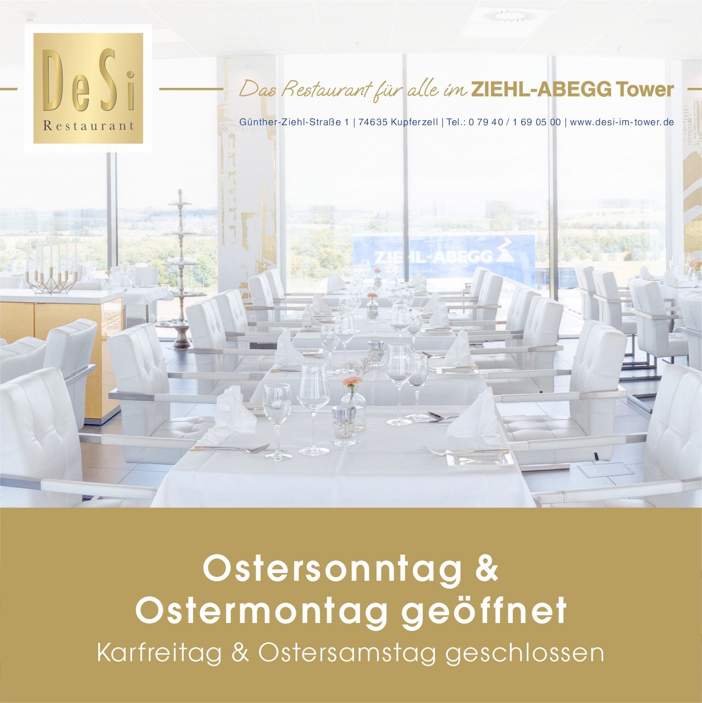 Im DeSi Restaurant im Tower in Kupferzell erwartet Sie ein besonderer Gaumenschmaus. Das DeSi-Team bereitet Ihnen mit ausgewählten und liebevoll zubereiteten Speisen ein geschmackvolles Erlebnis und die Location lässt Sie einen beeindruckenden Ausblick genießen.